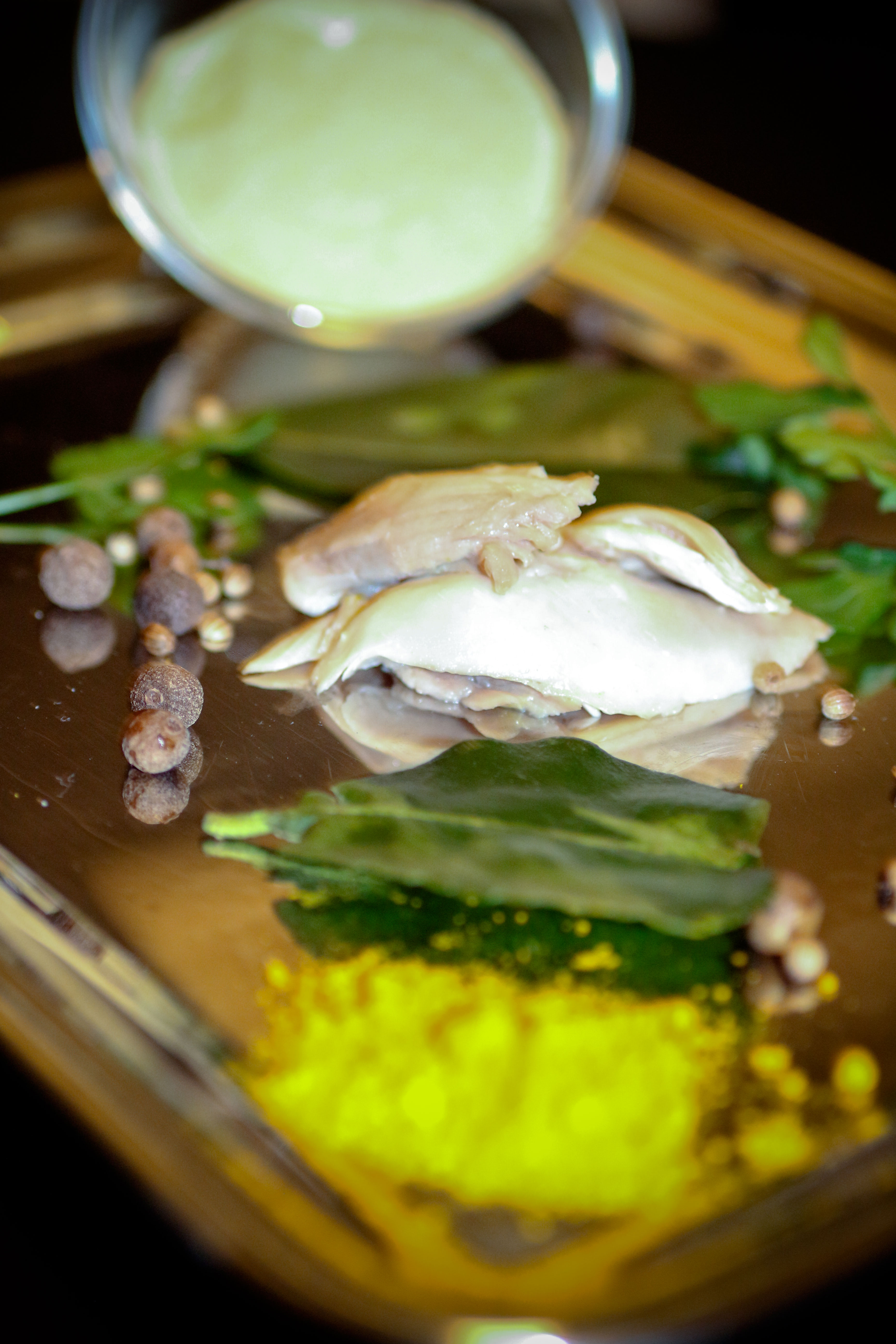- Als eerst was de kip met water en azijn. Daarna zet je een soeppan op het vuur en bakt heel kort de kip even aan beide kanten bruin. Voeg daarna de helft korianderzaad of poeder, all spice, kurkuma en limoenbladen toe. Bak dit heel kort mee en blus het af met al het bouillon laat dit koken totdat de kip gaar is.